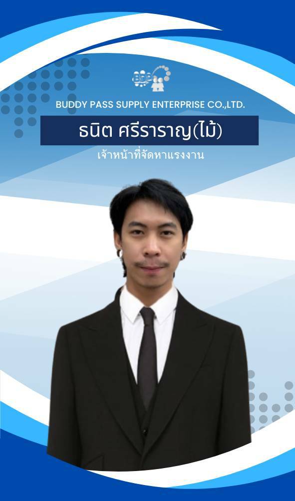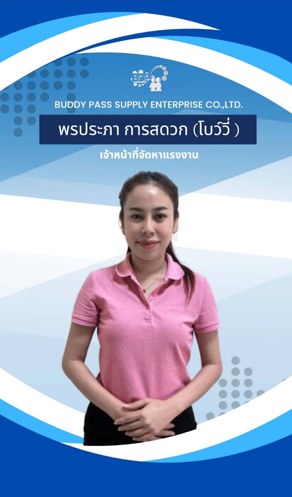 บริษัท บัดดี้พาส ซัพพลาย เอ็นเตอร์ไพรส์ จำกัด ก่อตั้งขึ้นด้วยความมุ่งมั่นที่จะเป็นผู้นำในการให้บริการนำเข้าแรงงานต่างด้าว MOU จากประเทศเพื่อนบ้าน (พม่า ลาว กัมพูชา) เราให้บริการครบวงจร ครอบคลุมทุกขั้นตอน เพื่อให้มั่นใจว่าลูกค้าจะได้รับแรงงานที่มีคุณภาพและถูกต้องตามกฎหมาย